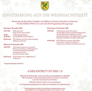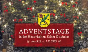 Wir freuen uns, dass dieses Jahr wieder die Adventstage in der wunderschönen Historischen Kelter in Ötisheim stattfinden. In diesem Rahmen werden unsere Chöre am Donnerstag, 11.12.2025, gemeinsam mit dem Blockflötenensemble SubPranino und Angela Bassier einen schönen Abend gestalten. Seid dabei und unterstützt den guten Zweck.